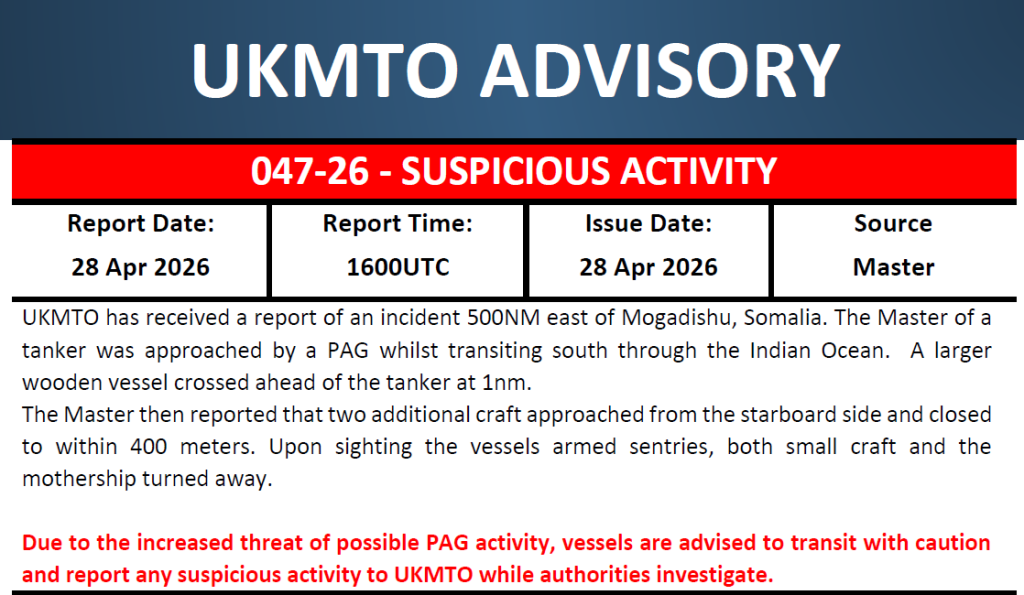 - UKMTO warnt vor „hoher Aktivität“ in der Region und riet zur Vorsicht.