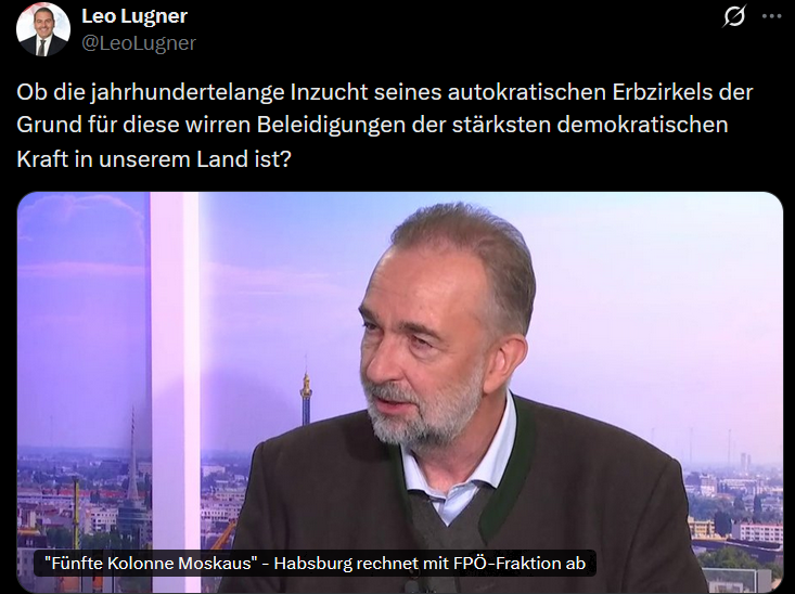 - Reaktion: Die FPÖ schießt scharf zurück. Leo Lugner fragt auf Social Media süffisant, ob „jahrhundertelange Inzucht“ der Grund für die „wirren Beleidigungen“ sei.
